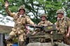 Veterans groups followed the elected officials, and military trucks and tanks took part in the parade.