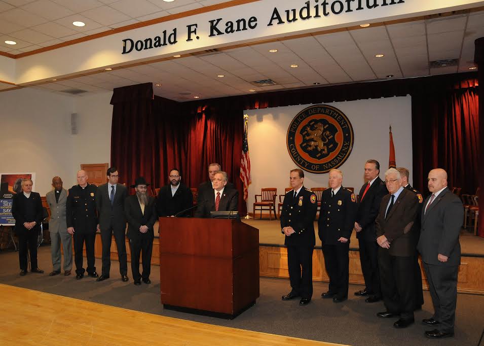 County Executive Ed Mangano and Acting Police Commissioner Thomas Krumpter announced Tuesday that areas near temples, synagogues, churches, and other places of worship will see an increased police presence in the coming days.