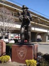 Next to the Massapequa Park Long Island Rail Road station, a memorial monument to these fallen heroes stands, tall and proud. A bronze statue of a firefighter rescuing a crying baby is flanked by marble plaques bearing the names of those who gave their very lives so that others may continue to draw breath.