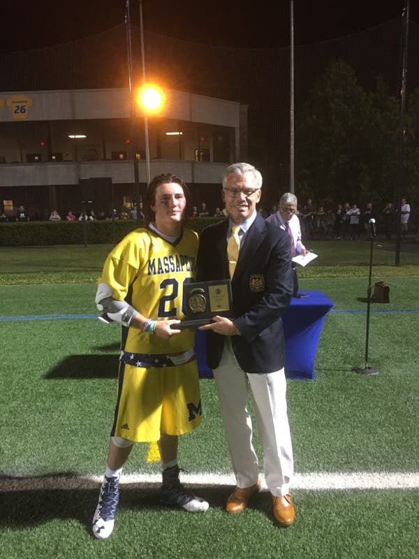Representing Massapequa High School, he captures leadership award at Nassau County boys' lacrosse finals.