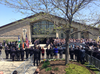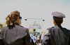 But the reunions and quiet chatter were quickly drowned out as a motorcade of more than 100 officers snaked through the town.