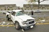 A truck and a car flipped over and collided with another vehicle on Sunrise Highway Monday afternoon, police said.