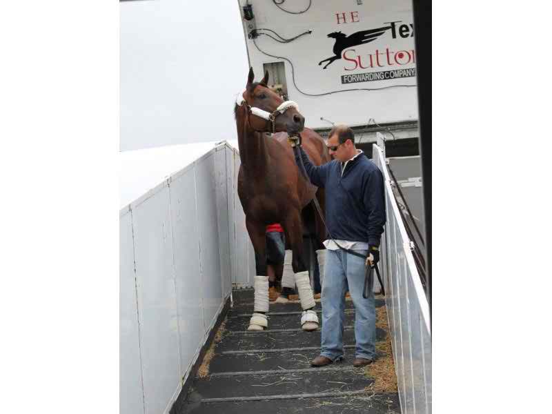 Photo: Triple Crown contender American Pharoah arrives on Long Island. (Credit via Facebook/Long Island MacArthur Airport)