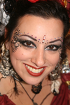 Costumes are also a BIG place where we see the difference as well as in the music. In "traditional" Cabaret, the costumes are very sparse, very sequined, the sequins are plastic and the beads are light, you do not often see coins any more on the Egyptian costumes and they look very "Vegas". The girls also look very "Vegas", young, thin with well displayed breasts. In tribal, the costume has a natural and organic feel. We try to adorn ourselves as tribal folk and nomads would...REAL metal, real coins, REAL crystal and stone beads, Shells, tassels, flowers, feathers...the costumes are heavy and very individual...as individual as the girl dancing. People often hold my belts and bras and marvel at the weight. But it is not just that they are heavy, it is the wonderful weight of personality which goes into each one. A Dancer will hunt for months for the perfect Kuchi pendants for her belt, create tassels from grandma's old shawls and create a costume rich in her own nomadic history. Not to mention that the costumes usually include layers of fluffy skirts, harem pants, veils and such, so although most still expose their belly, you never feel naked doing it. And the bonus...if you REALLY do not feel comfortable with your tummy ( though tribal celebrates EVERY body style) many costumes have Ghwazi coats which cover the tummy. ( And you STILL get well displayed cleavage if you want it!)