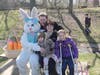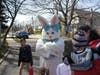 Children took part in an Easter egg hunt and posed for photos with the Easter Bunny yesterday at Fraser Park.