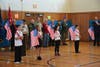 Dressed in patriotic colors, administrators, teachers and students in grades K-6 filled the gymnasium as veterans and their families entered to rounds of applause. Opening the ceremony were members of the fifth grade color guard, each of whom held an American flag as they filed in. The group also led the Pledge of Allegiance and gave a vocal performance of “The Star-Spangled Banner.”