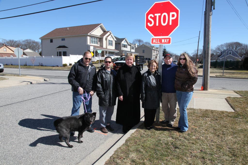 Kate Murray, Hempstead Town Supervisor, and Angie Cullen, town councilwoman, were on hand to share in the installation of the new stop signs. Neighbors also came out to celebrate the continued concern for the safety of the neighborhood and the action that was taken.