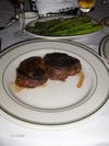For the main course, I opted for the petit filet mignon cooked medium well with a side of sauteed asparagus and my husband ordered the stuffed filet of sole with a baked potato on the side. The filet mignon had a perfect crust on the outside and was tender and just the right shade of pink on the inside. I dabbed on some of Brooks & Porters own steak sauce and found it nicely smooth with a hint of apple. After practically demolishing my steak I tried some of the sauteed asparagus with an olive oil, black pepper and fresh garlic glaze. I didn't expect anything less than magnificent and magnificent was what I got.