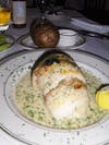 My husband's stuffed filet of sole was extremely fresh, and the stuffing was atypically more fish than bread. The baked potato made a nice, understated complement.