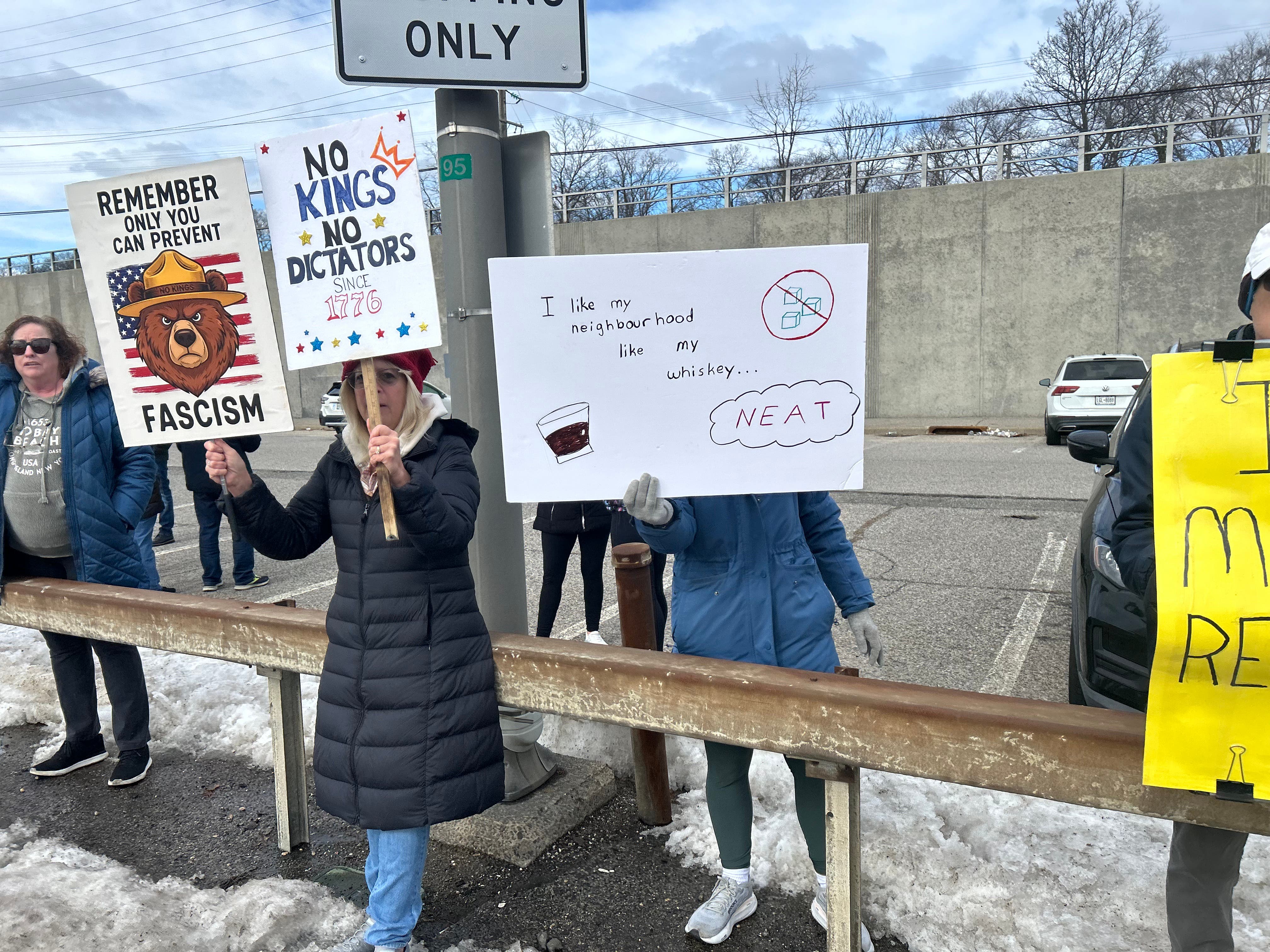 Other signs invoked bible verses, or simply read “ICE out.” There were also numerous American flags present along the highway, some of which flew upside down. Regardless of the words written on the poster boards, the message among protestors was clear: They wanted a change.