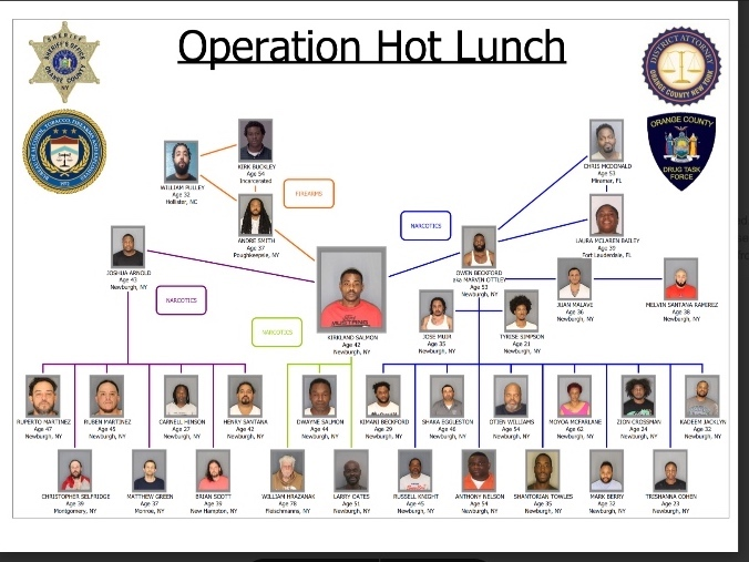 On May 21, 2024, the now-famous, multi-jurisdiction sting followed a months-long investigation into firearm and narcotics trafficking, centered around a food truck in Newburgh. The operation, code named "Hot Lunch," resulted in 33 suspects being charged with narcotics, firearm, and conspiracy offenses. It is believed to be the largest narcotics and gun trafficking case in the history of Orange County.