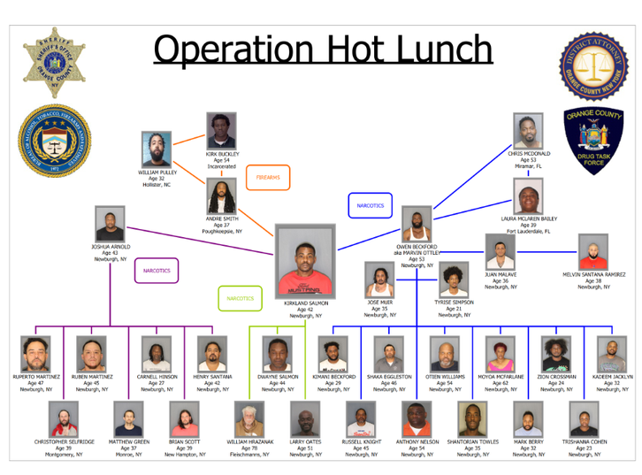 The investigation into illegal firearms and narcotics trafficking in Orange County, "Operation Hot Lunch," was conducted by the Orange County Drug Task Force, the Orange County Sheriff's Office, the Bureau of Alcohol, Tobacco, Firearms and Explosives, together with the Orange County District Attorney's Office, the City of Middletown Police Department, New York State Police, the City of Poughkeepsie Police Department, and the Hudson Valley Crime Analysis Center. The operation resulted in the arrests of 26 people charged with narcotics, firearm and conspiracy offenses.