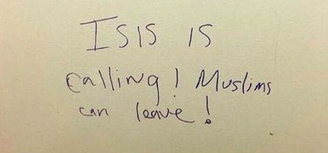 The graffiti included a heart with the word “Trump” next to it, “ISIS is calling! Muslims can leave!,” calling Latino immigrants “stupid” and a derogatory word for African-Americans, along with a twice-repeated expletive.