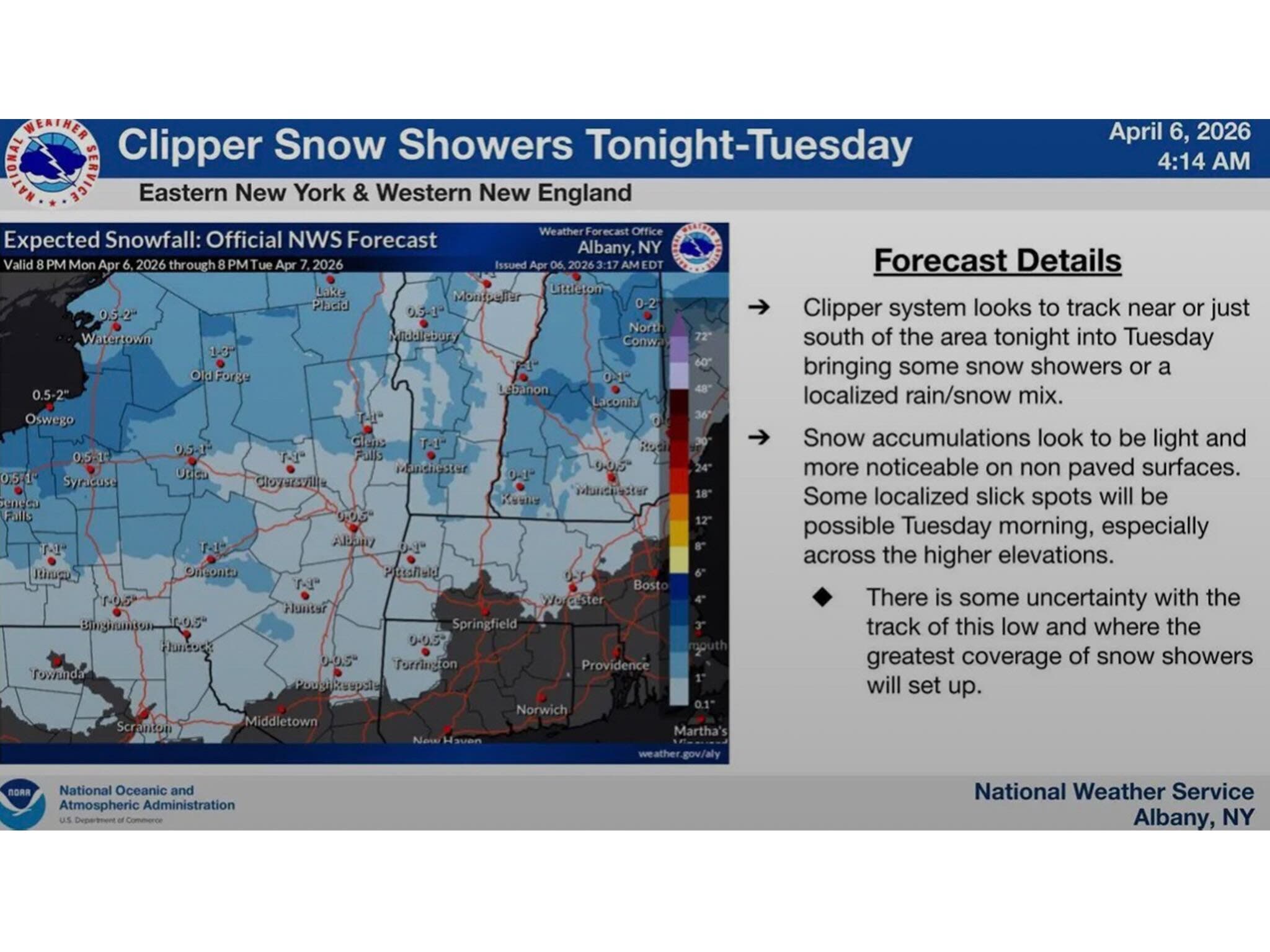 The National Weather Service in Albany cautions, “Winter weather isn't over just yet!”