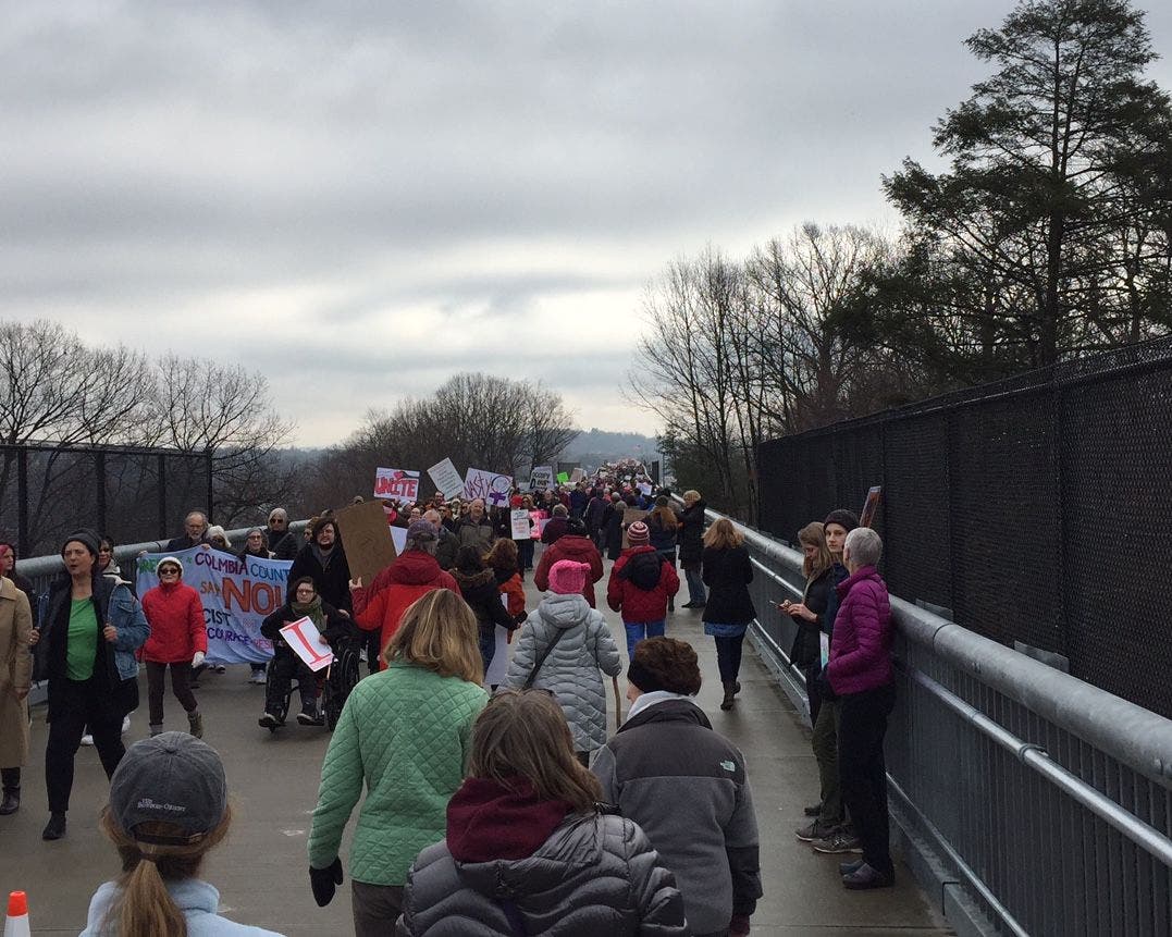 POUGHKEEPSIE, NY — Thousands of women, men and children — and quite a few dogs on leashes — participated in the Poughkeepsie Women’s March Saturday on the Walkway Over the Hudson.