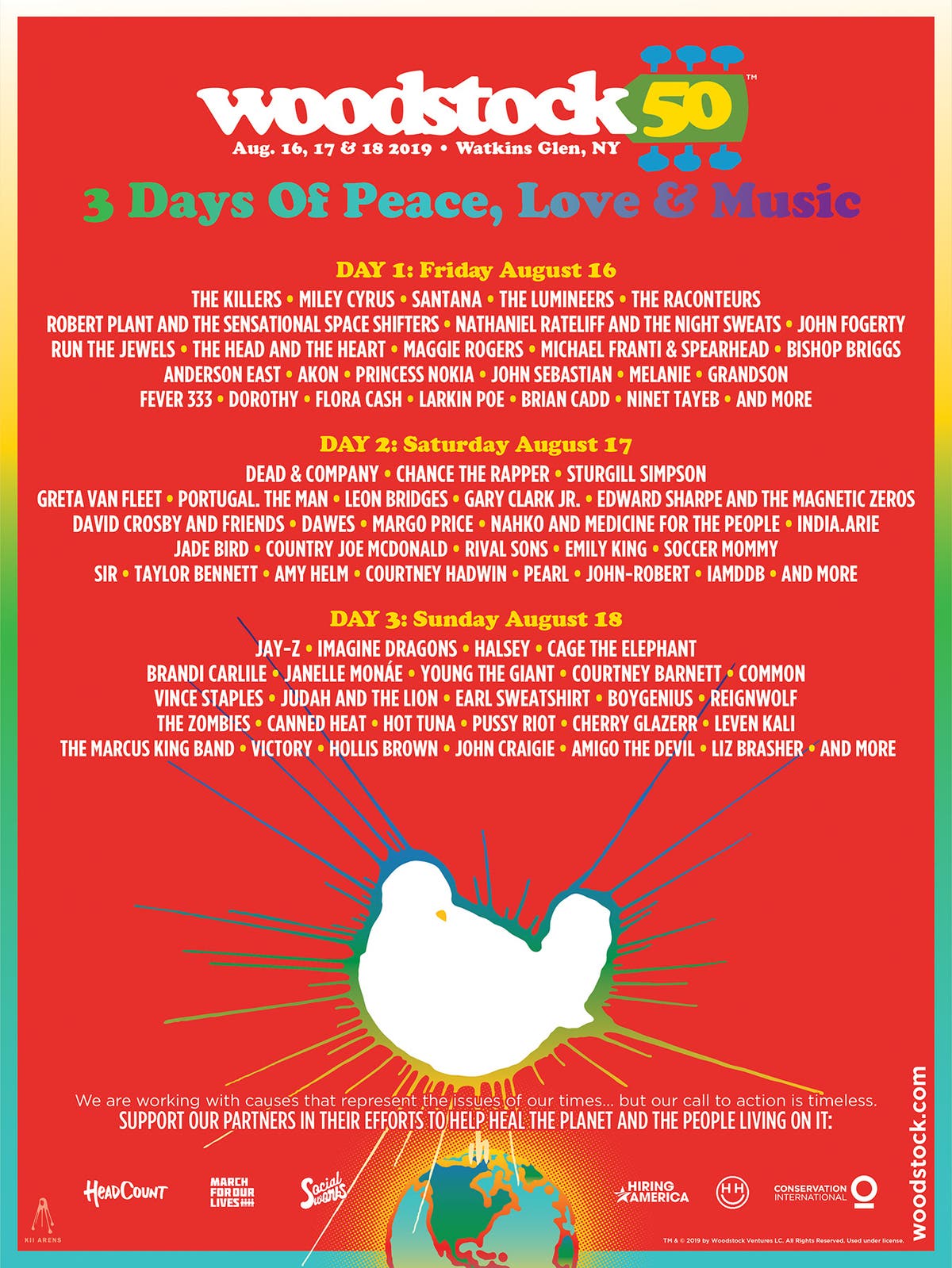 Among the artists previously announced to perform at Woodstock 50 are Miley Cyrus, Santana, The Lumineers, John Sebastian, Chance the Rapper, David Crosby and Friends, Country Joe McDonald, Janelle Monae, Hot Tuna and Jay-Z.