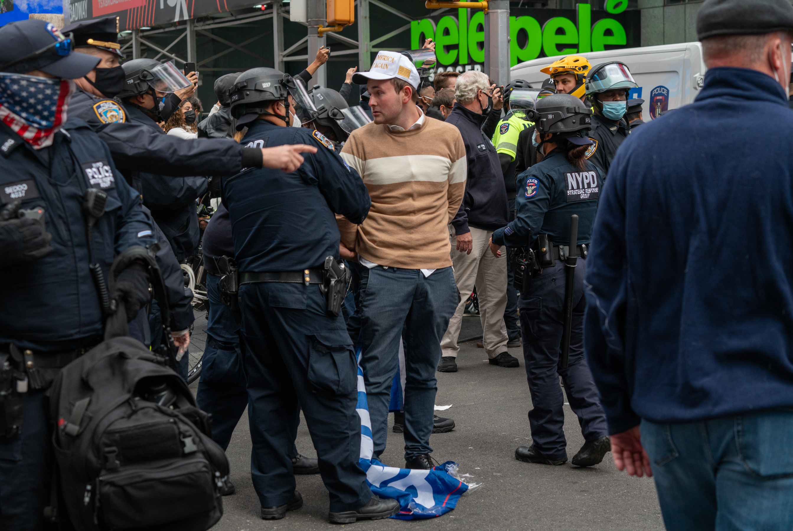 The two sides included a pro-Trump caravan of cars, organized by the group Jews for Trump, which rolled into Times Square and was met by anti-Trump protesters who had marched over from Brooklyn, according to the New York Times.