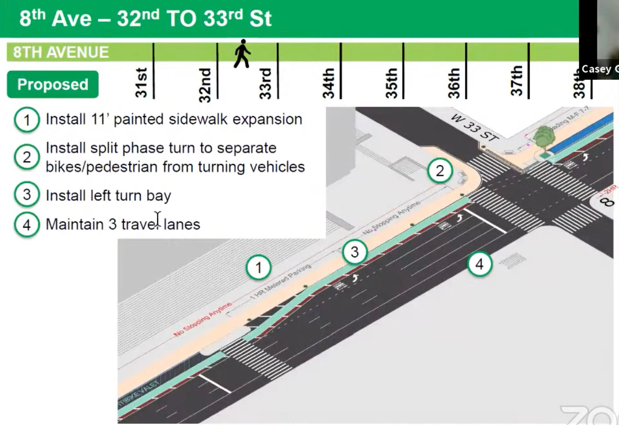 This project is an extension of a 2019 effort that widened sidewalks from 38th to 43rd streets, the DOT told Community Board 4 last week.