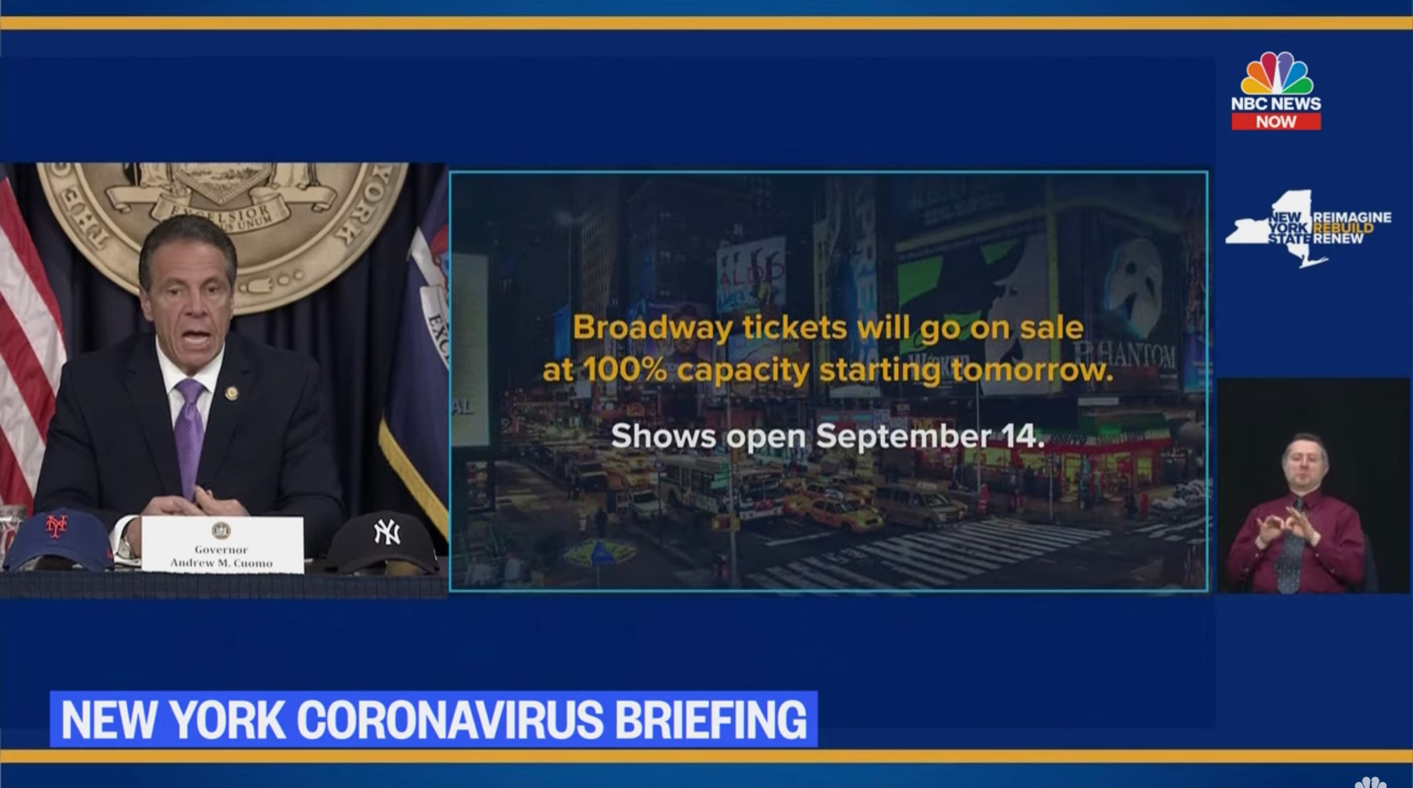 Broadway To Reopen Sept. 14, Ticket Sales This Week, Cuomo Says