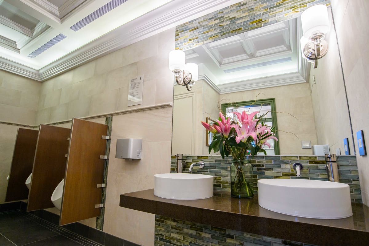 Among the new improvements: imported floor and wall tiles, coffered ceilings, crown moldings, all-weather temperature controls, energy-saving LED lighting, self-flushing toilets that have alternating seat covers, fresh flowers and a sound system playing classical music.