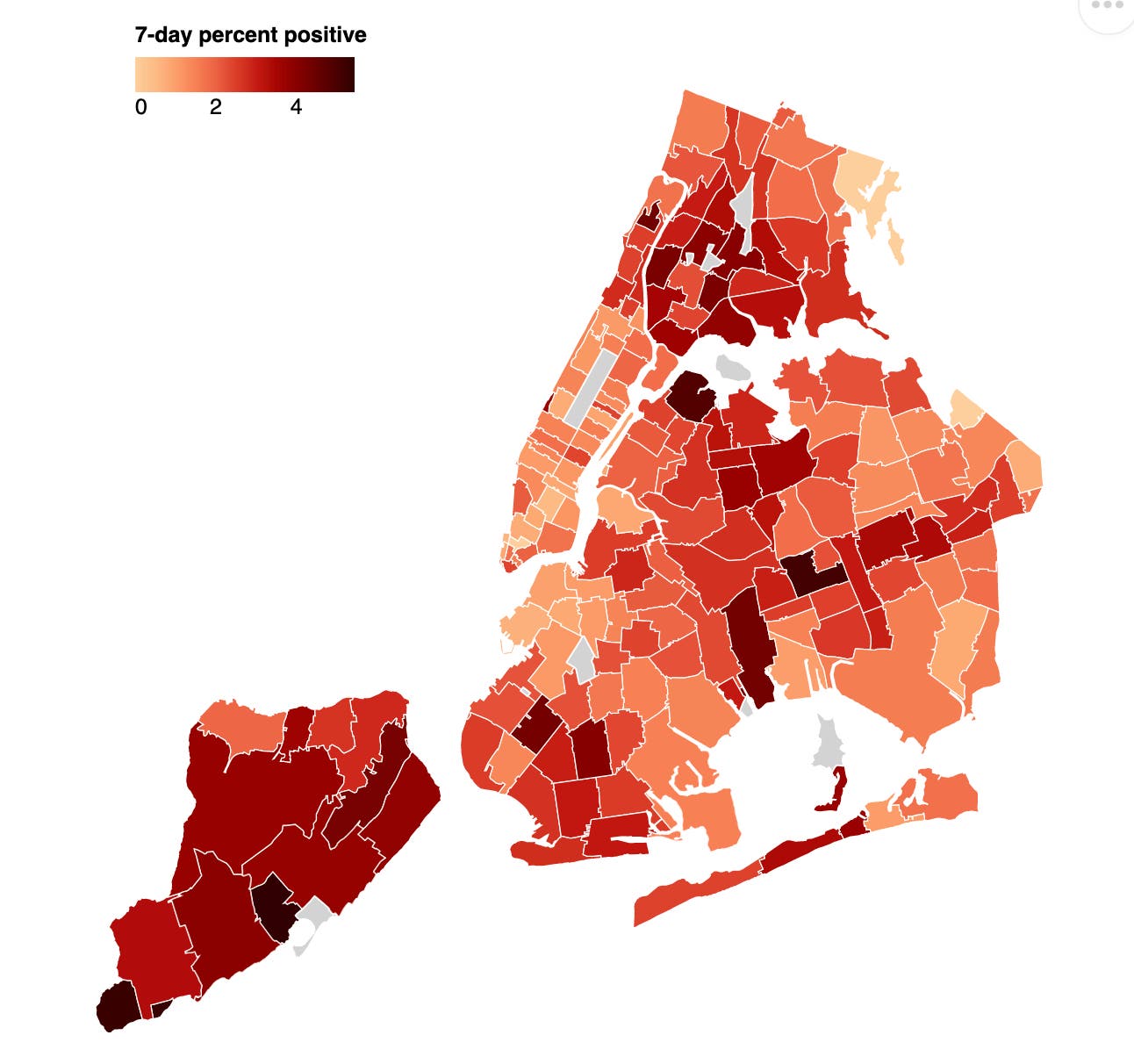 More than half of New York City's ZIP codes had surpassed a 2-percent positivity rate as of Wednesday. The 2-percent rate was once a threshold for a ZIP code joining the Health Department's watchlist for a coronavirus surge.