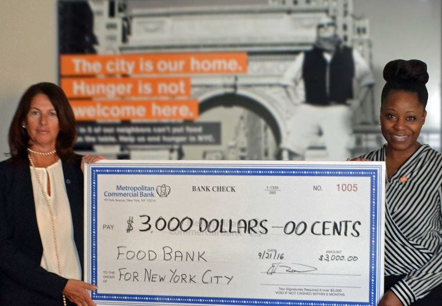 Metropolitan Commercial Bank Supports Food Bank For New York City with Donation