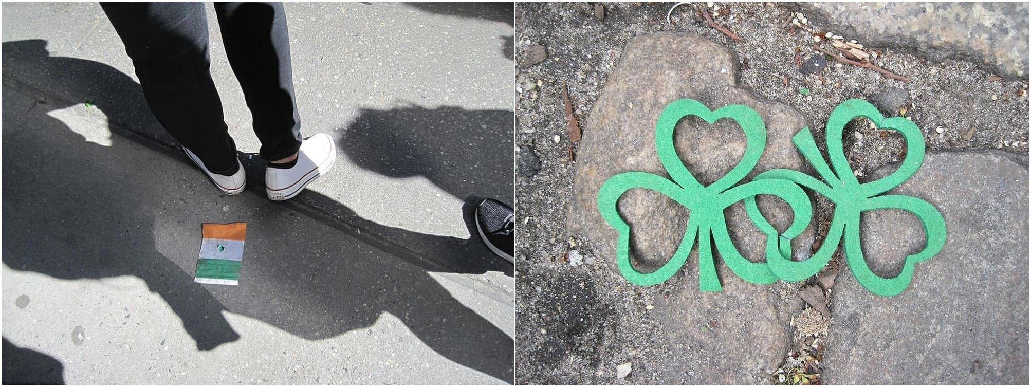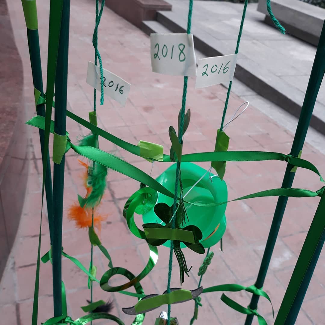 That lone marcher was Suzanne Broughel, an Irish-American artist who, starting in 2016, began scavenging along the edges of each year's parade, picking up the plastic hats and green feathers and shamrock-shaped sunglasses that the revelers had tossed to the ground.