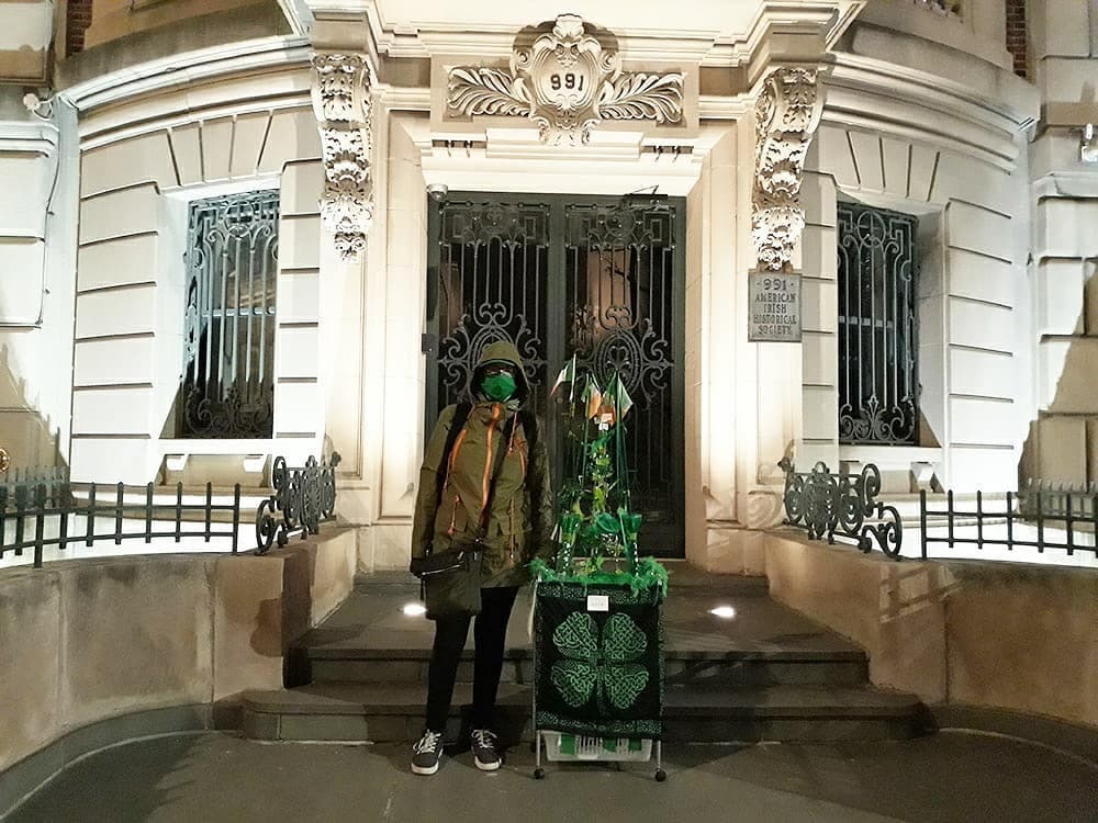 MIDTOWN MANHATTAN, NY — For the second consecutive year, no crowds gathered to celebrate St. Patrick's Day this week, but people who passed by Fifth Avenue on Wednesday may have noticed one woman pushing a cart along the typical parade route, piled high with festive items.