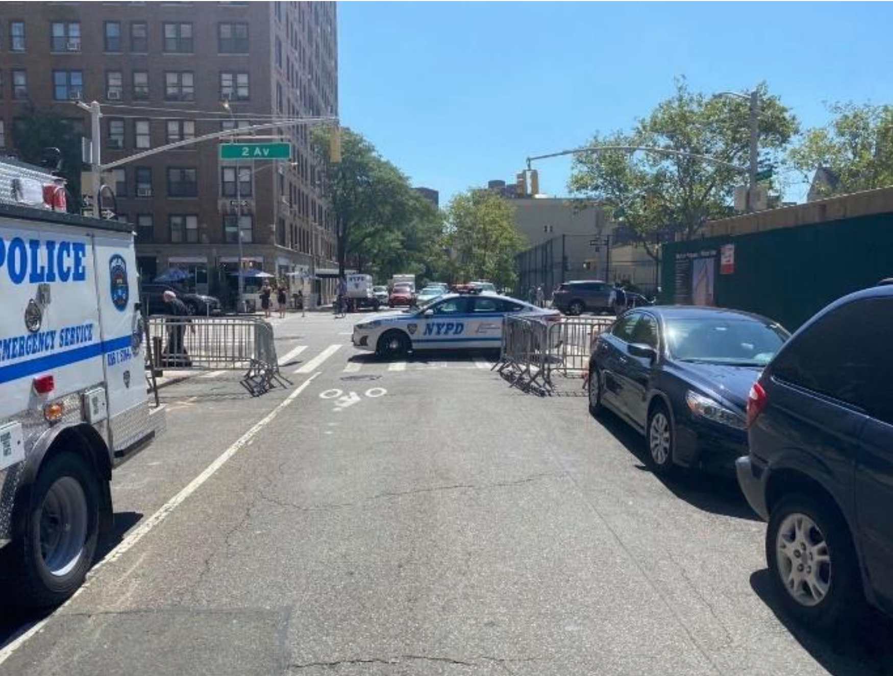 With no such threat appearing imminent, the officer predicted that the barricades would be taken down within a month. Until then, the stretch of East 51st Street between 3rd and Lexington avenues is closed to drivers except those with "business on the block."