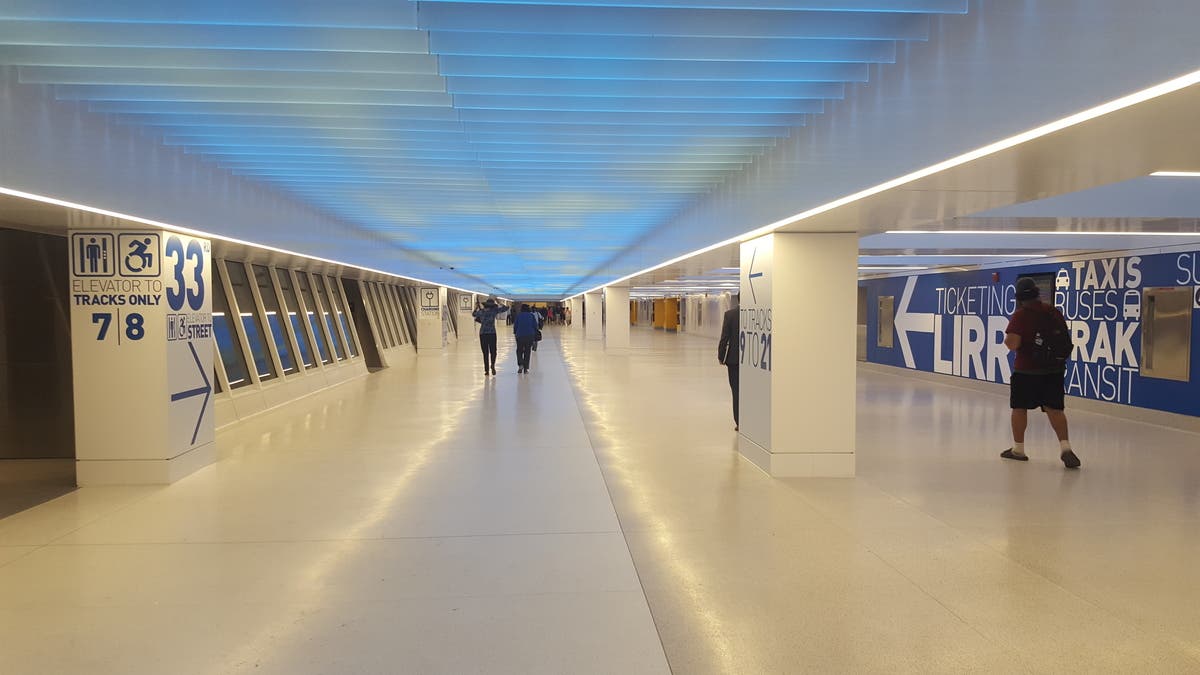 A new western concourse for Penn Station opened to the public Thursday, featuring crisp architecture, modern design and mellow, blue-hued lighting. The new concourse is part of the first phase in the Moynihan Train Hall expansion, which will convert the Farley Post Office building on Eighth Avenue into a mixed-use development featuring a brand-new transit facility.