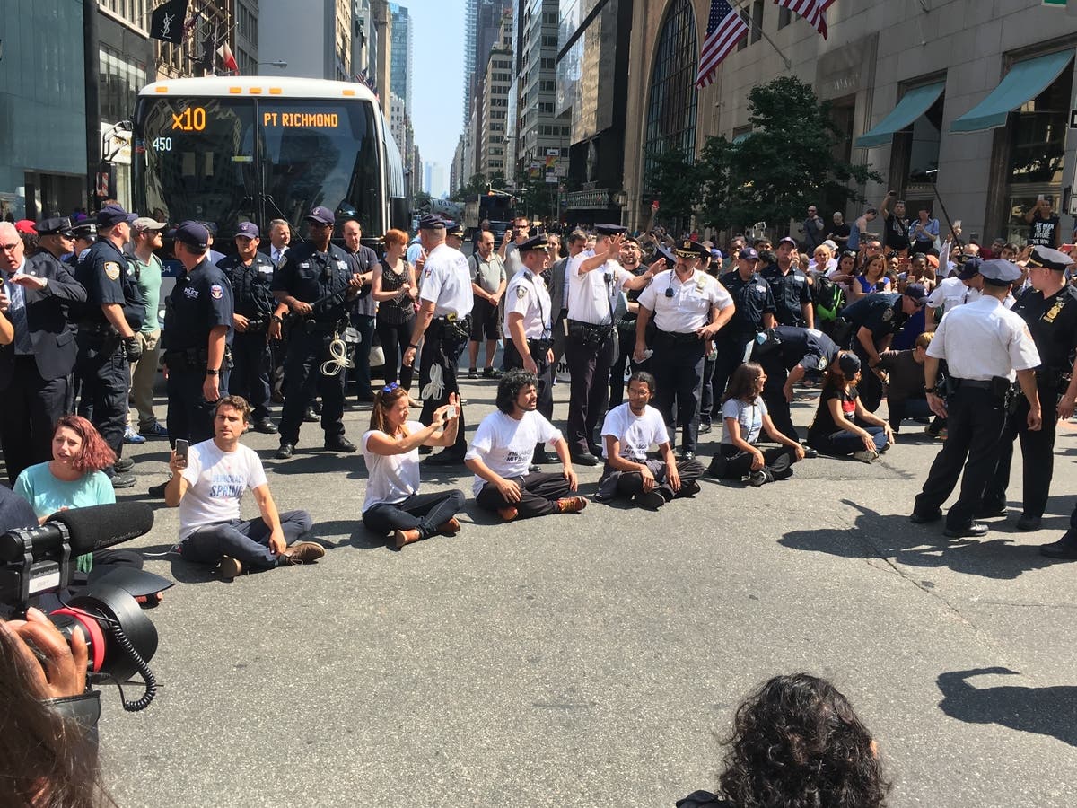 34 protesters who sat in middle of 57th Street by @TrumpTower to protest the suspension of DACA have been arrested: NYPD's Terence Monahan pic.twitter.com/pHH46V7WOb