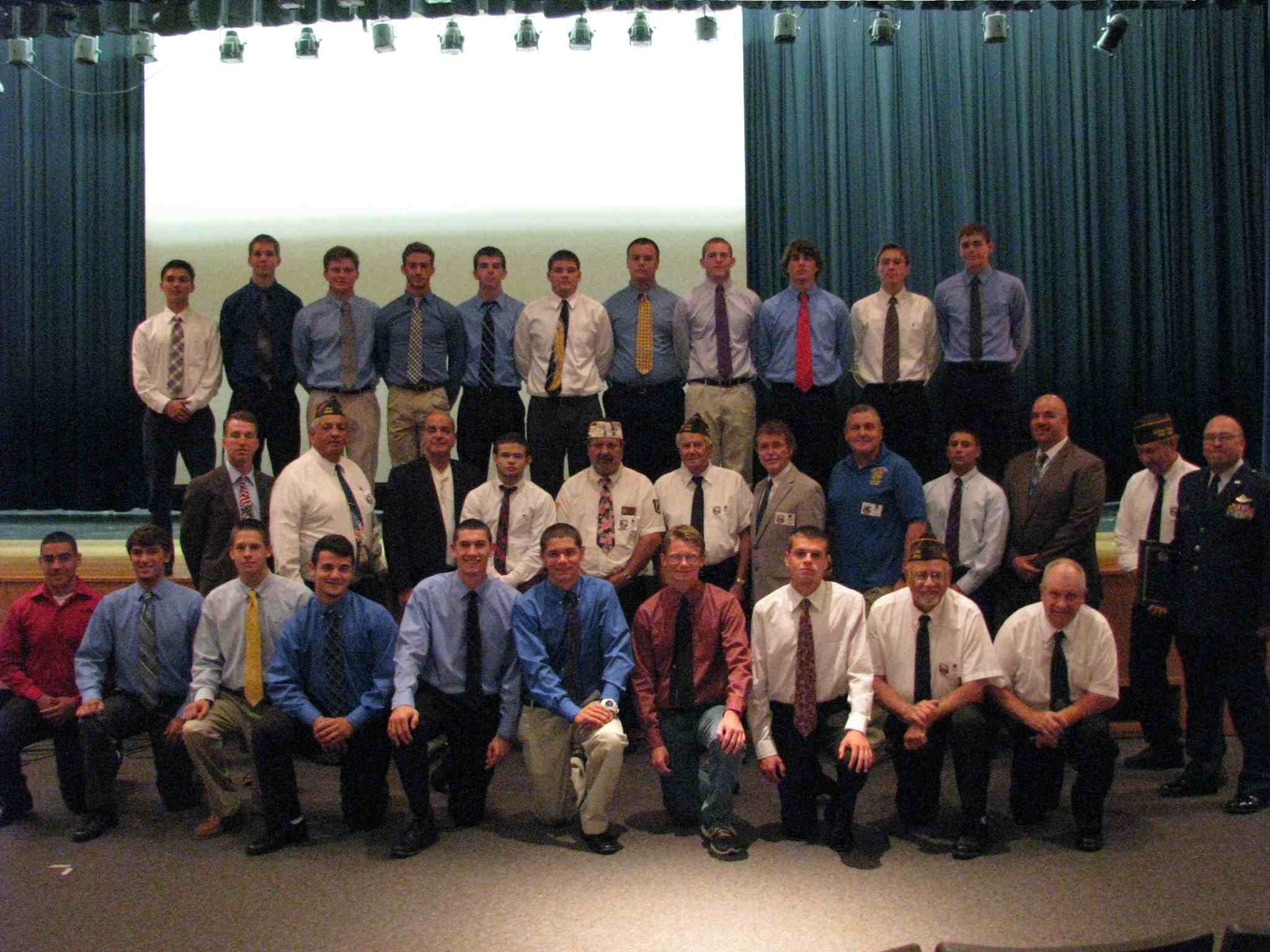 Photo provided by Rocky Point Schools: Members of the Rocky Point High School Varsity Club, led by teacher Richard Acritelli, helped organize a moving Sept. 11 program for students, which featured local heroes.
