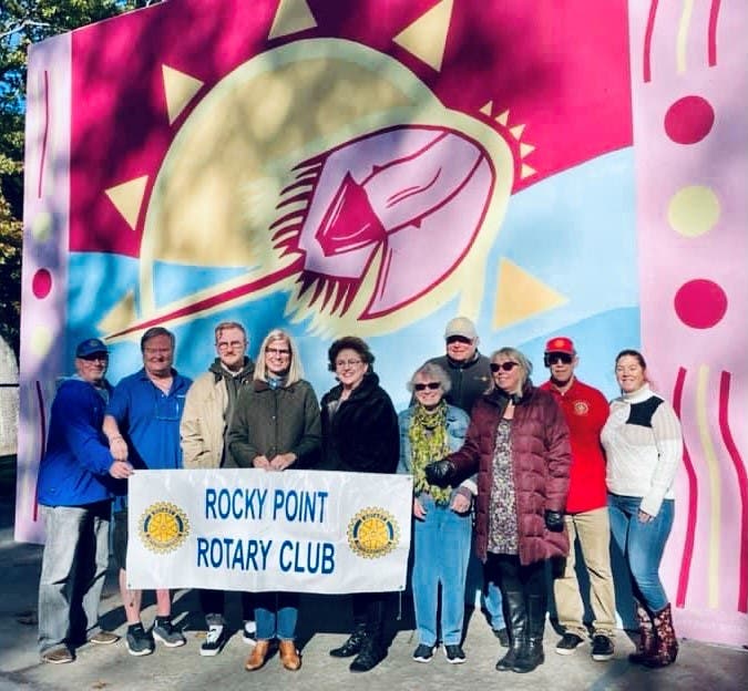 Pictured left to right are Rocky Point Rotary Club Vice President Jeff Davis; Kevin Mann; Steven Soltysik, the artist; Councilwoman Jane Bonner; Rocky Point Rotary President, Deirdre Dubato; Sound Beach Civic President, Bea Ruberto; Rocky Point Rotary Club member, Larry Kogel; Rocky Point Rotary Club Secretary, Suzanne Johnson, Rocky Point Rotary Club members, Andrew Kepert and Trisha Ewald.