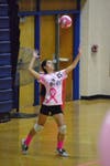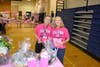 The high school gym was a sea of pink, with banners, pink balloons, pink tee shirts and food and beverages. Pink paper volleyballs adorned the gym walls to honor those who have survived breast cancer or have succumbed to breast cancer.