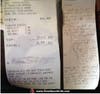 On Wednesday night, he found out. The waitress sent the photo. It shows a recent receipt from the restaurant where the waitress works. The total on the bill before tip: $43.50. The total after: $3,043.50.