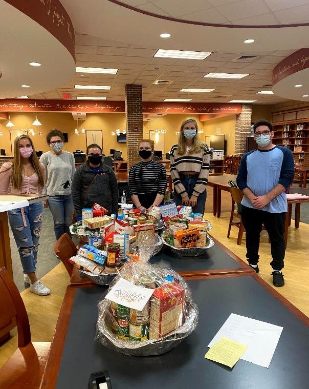 MILLER PLACE, NEW YORK (DECEMBER 2020)—With the holiday season here, the National Honor Society (NHS) students from Miller Place High School (MPHS) facilitated their annual school wide food drive. Led by NHS officers, students and staff aimed to provide non-perishable food assembled in the form of packaged baskets, filled with the donations as well as personal notes, for those in need.