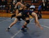 It was all business as the first match at 112 pounds got underway. The Wildcats excited the crowd when T.J. Fabian secured a pin over Rocky Point's Connor O'Gallagher. It was all downhill from there though, as Rocky Point won the next six match ups, four of them by pin. Of those six match ups, two of them stuck out in Goldstein's head.