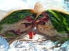 What's Inside: The Turkey Ranch Wrap is stuffed with bacon, sundried tomatoes, avocado, romain lettuce, swiss cheese and ranch dressing. The Pirates Cove smoothie is made with Passion fruit juic, pineapple sherbet, frozen strawberries and frozen peaches.