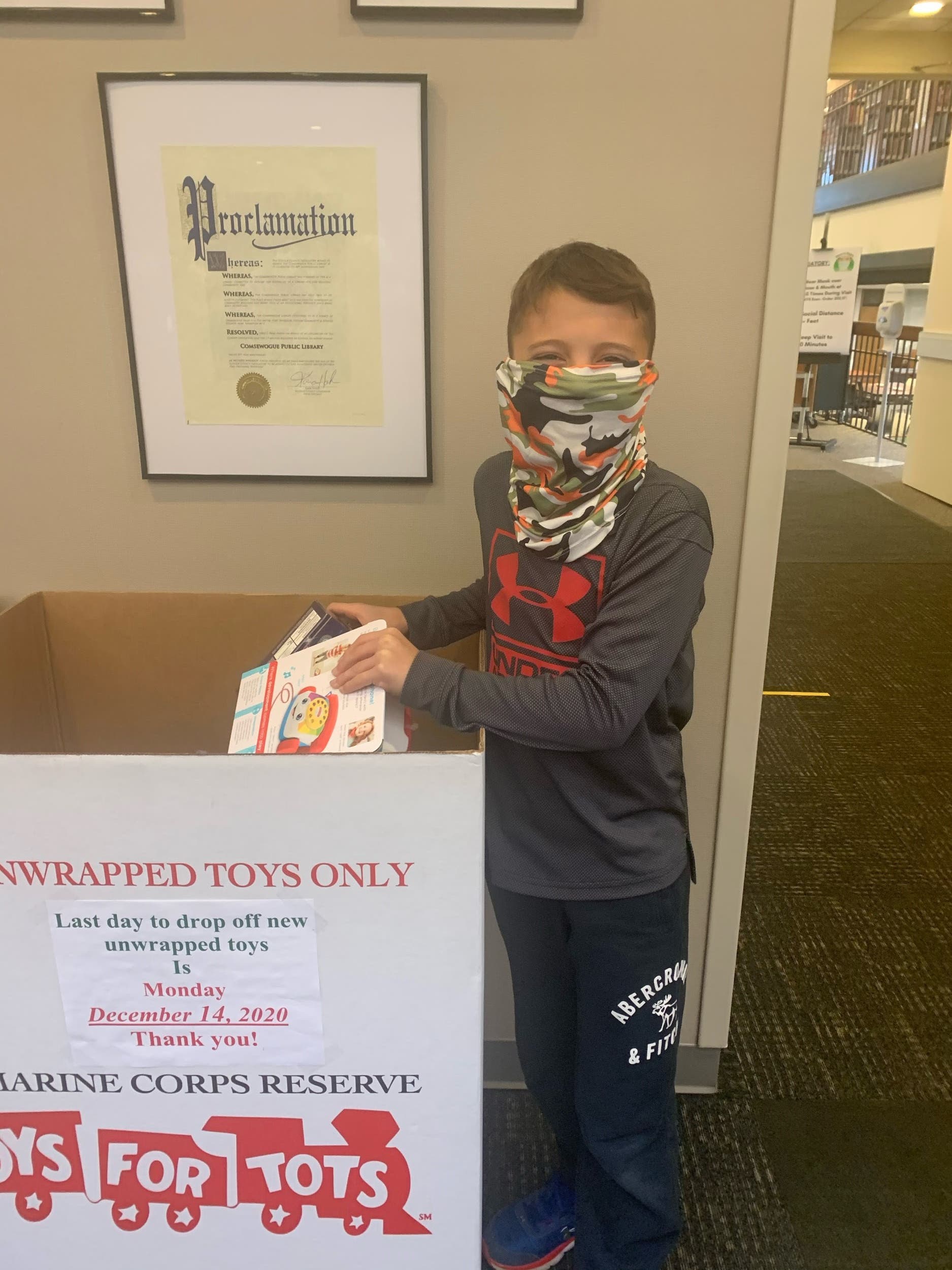 In a personalized letter to the class, Christian asked for his peers’ help in donating to Toys for Tots, a charity that works to collect new and unwrapped toys to distribute to the less fortunate around Christmas. Since then, a collection box has been placed outside the Comsewogue Library to encourage students to bring their unwrapped toys there to donate.