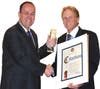 Former NSWCA President Howard Abbondondelo of Albertson Water District receives two awards at a recent NSWCA meeting.