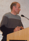 Richard Brummel protesting cutting down of sycamore trees on Roslyn Road.