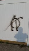 - Police reported recent graffiti on Woolsey Avenue that displays the letter “A” with a circle and slash through it, which is known as the symbol for Anarchy. (Photo 2)