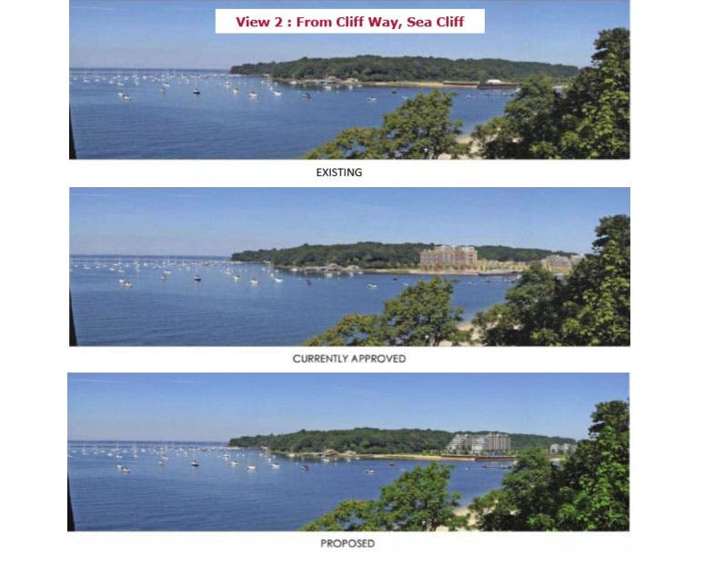The City says Sea Cliff’s claims are regarding a prior PUD Master Plan from 2011, which approved a row of 12-story “bookends” on the west side of the project. The current Amended PUD Master Development Plan will actually “improve view sheds from Sea Cliff and Hempstead Harbor,” the City said in a press release.