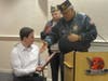 Marine Lt. James Byler receives donations and support at village board meeting.