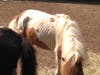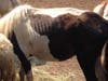 “In one manure-filled paddock on the property, a grey and white male donkey was found with open wounds on his legs. In another paddock on the property, part of the fence was found missing, and various ropes and garbage strewn about. In one section of the property, part of a wooden fence appeared to have been chewed off by an animal that had not received enough food to eat.”