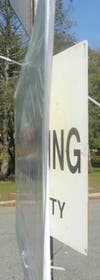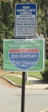 Campaign signs in the Roslyn Country Club area blocking other road signs.