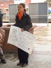 Demonstrators produced numerous signed petitions which they took to the nearby county legislature in advance of Friday’s hearing on the 2012 county budget.
