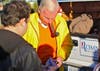 Virginian James Wilson only one at debate handing out Romney signs.