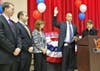 Nassau County Clerk Maureen O’Connell, herself a Mineola resident, administered the oath of office to Strauss, praising the administration’s work for upgrading the village’s bond rating as well as extolling his responses to “two hurricanes, a nor’easter, numerous rain, rind and snowstorms and of course... Superstorm Sandy. He’s brought senior housing to Mineola, he’s approved new workforce housing for our young adults, under his direction the Bruce Terrace and the Second Street flood mitigation projects were begun. For those of you and all of us who’ve been around Mineola so many years, the Bruce Terrace flooding has been going on since I’m a child.”