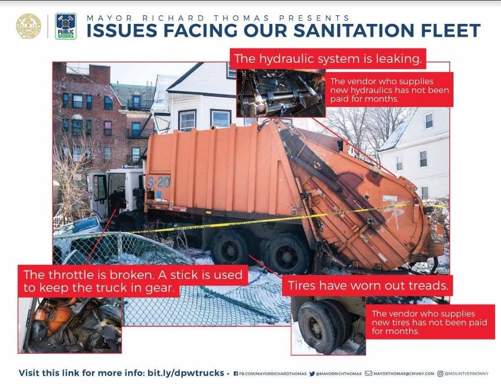 As you are aware the disruption of sanitation services is due to Comptroller Deborah Reynolds’ failure to pay outstanding invoices that date to the middle of last year. Without payment, the vendors that supply the City with repair parts have refused to deliver critical parts for the City’s sanitation trucks, resulting in the garbage-collection disruption.